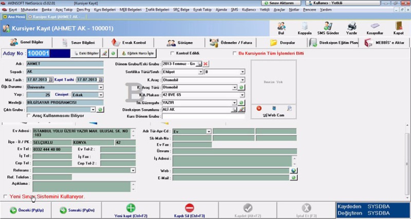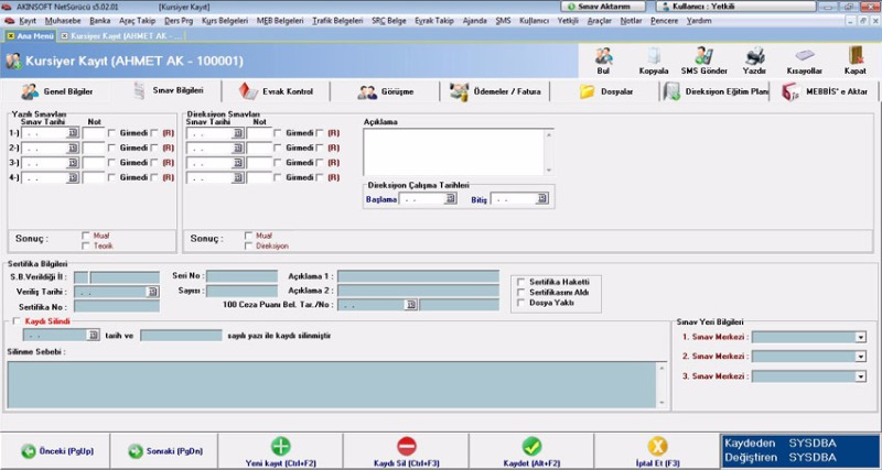 * Araç ve imtihan güzergah kayıtlarını girebilir,