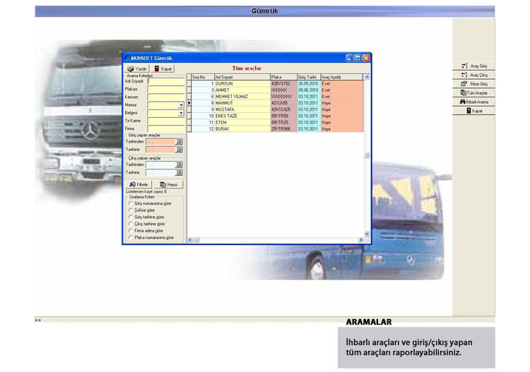* İhbarlı araçların dökümünü alabilir,