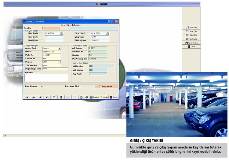 * Aracın hangi ülkeden geldiğini, plakasını, karoser numarasını kaydedebilir,