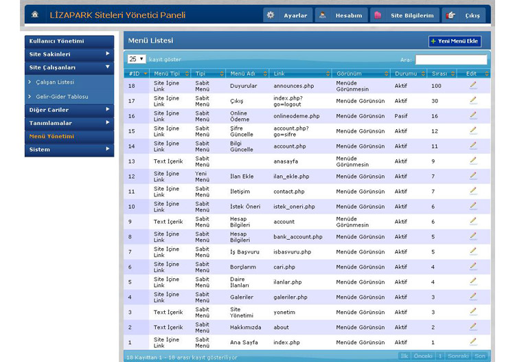 * Duyurular, tanıtımlar, site içerisindeki kiralık satılık konut ilanları düzenlenebilir.